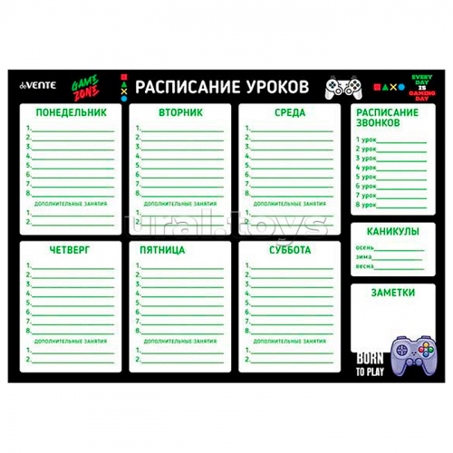 Расписание уроков магнитно-маркерное многоразовое "Gamer" А3 (420x297 мм) ламинированное