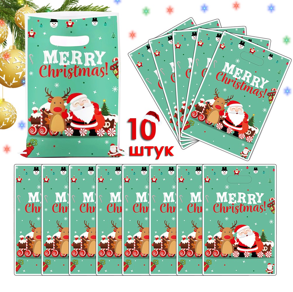 Набор пакетов подарочных новогодних 10 штук 25*17 см. Цвет: ЗЕЛЕНЫЙ
