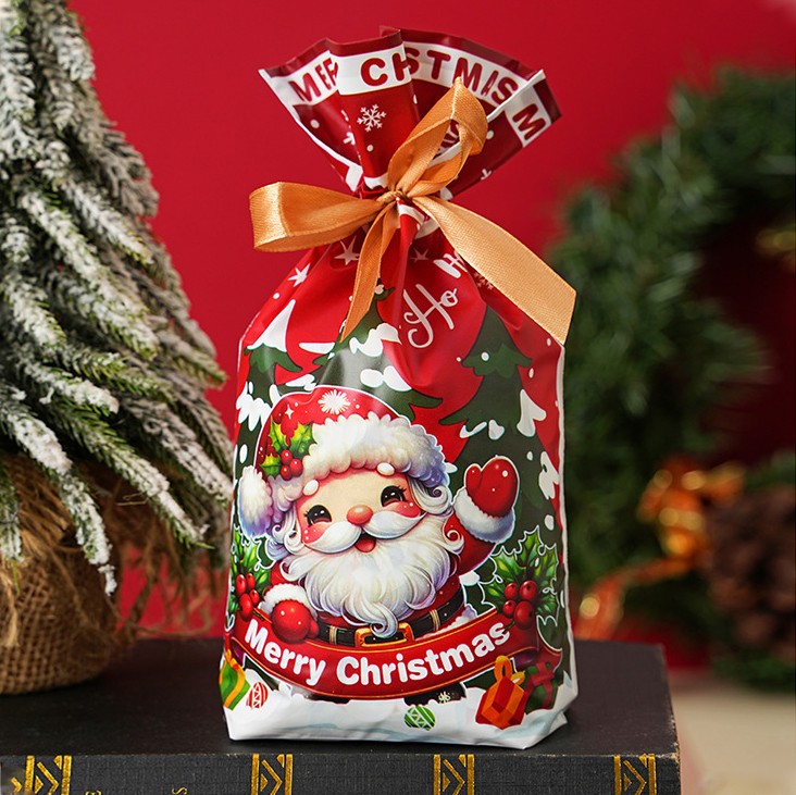 Пакет новогодний с атласной лентой для подарков и конфет 23*15 см. "Дед Мороз" Красный