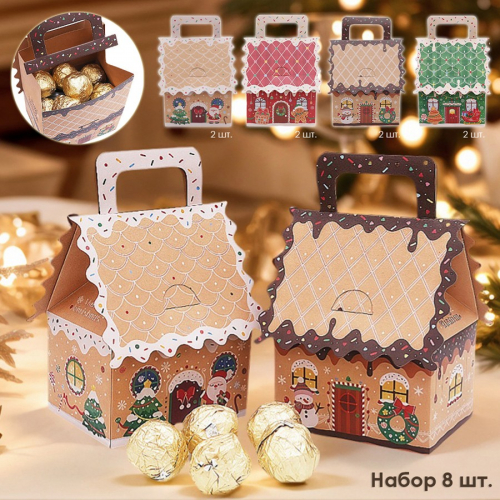 Набор из 8 подарочных складных коробок "ПРЯНИЧНЫЕ ДОМИКИ". Размер: 16,5*10*7,5*7,5 см.
