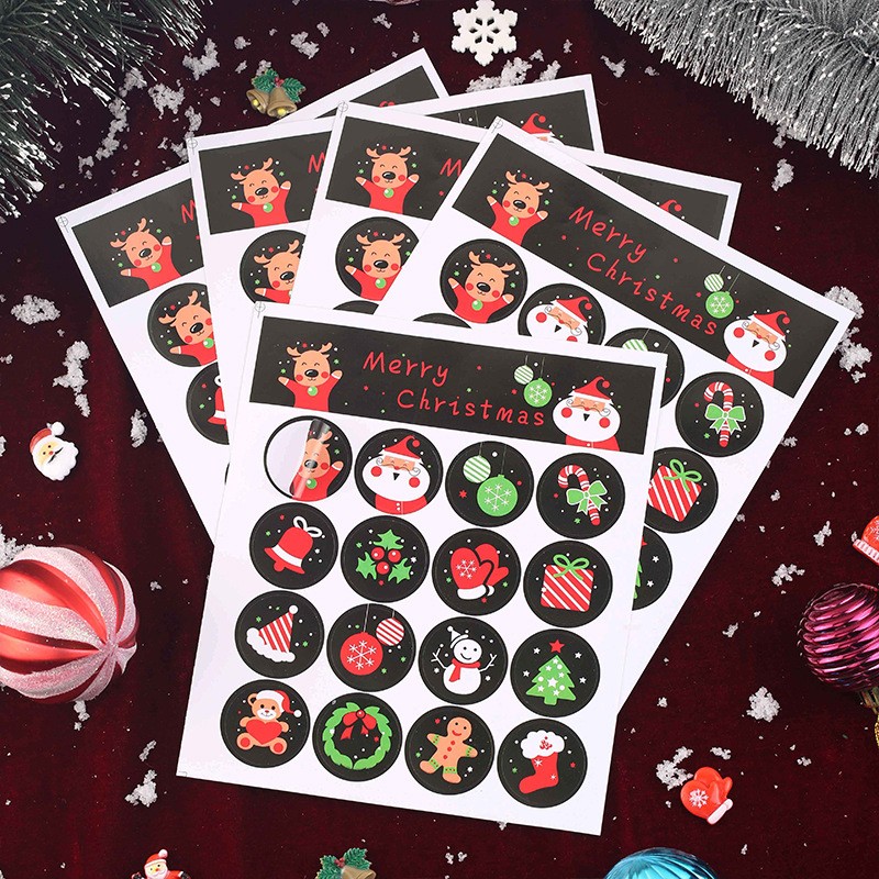 Наклейки новогодние круглые 9 шт. Диаметр 4 см.