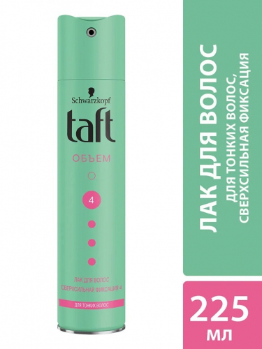Sch.Тафт Лак 225 мл ОБЪЕМ для Тонких волос сверхсил. фикс. Розовая полоса "4" зеленый (12 шт.кор.)