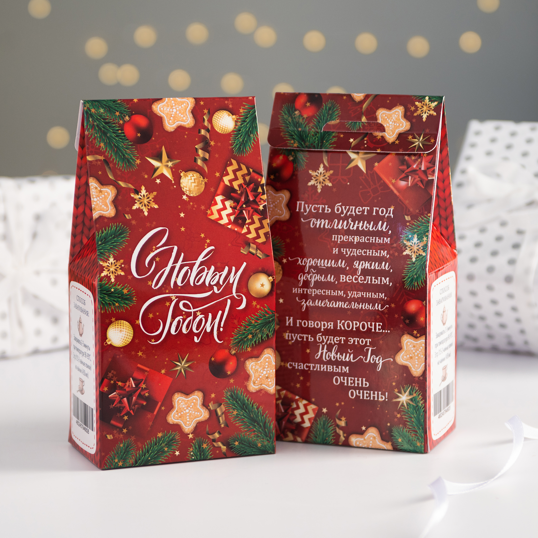 Подарочный чай-домик "С Новым Годом (предметы на красном)"