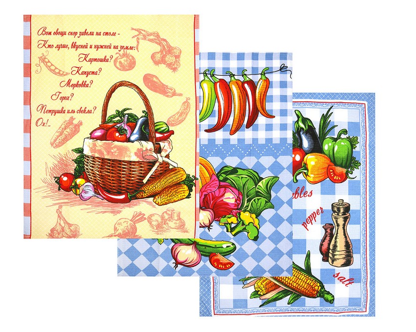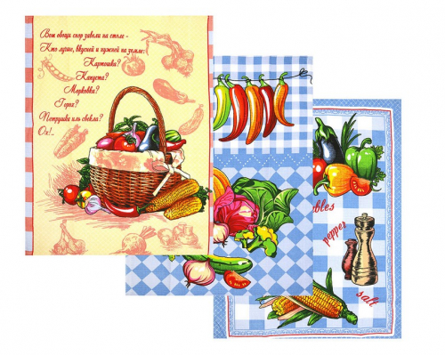 33585 Полотенце вафельное кух 48х62см "Урожай" комплект 3шт 171гр/м2 хлопок 100% П-48/60-3