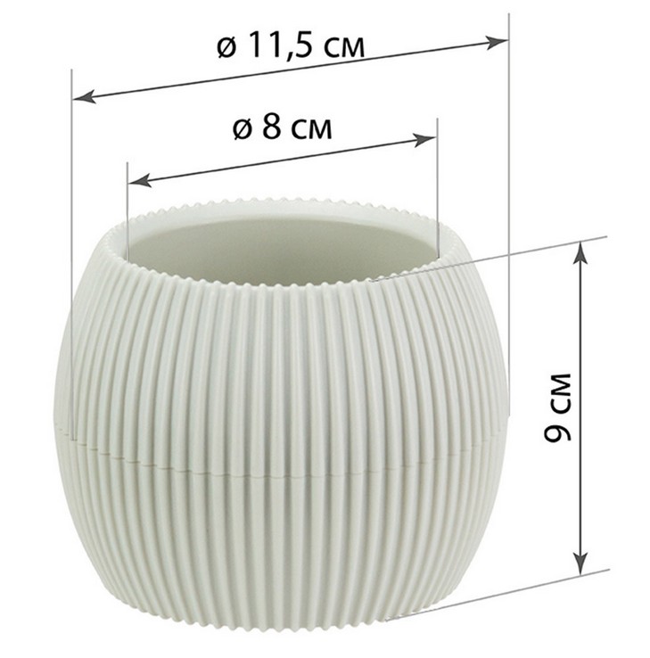 Кашпо для цветов пластмассовое "Пиканто" 0,35л, д11,5см, h9см, поддон на защелках, белый ротанг (Россия)