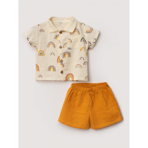 ..К74-87 М Комплект рубашка + шорты из муслина, Радуга.
