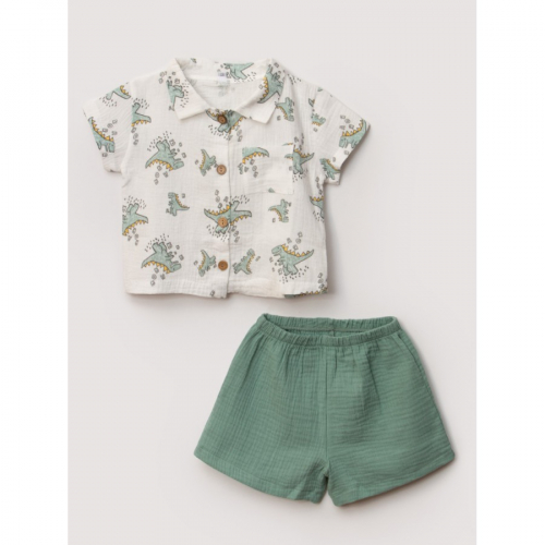 ..К74-87 М Комплект рубашка + шорты из муслина, Дино.