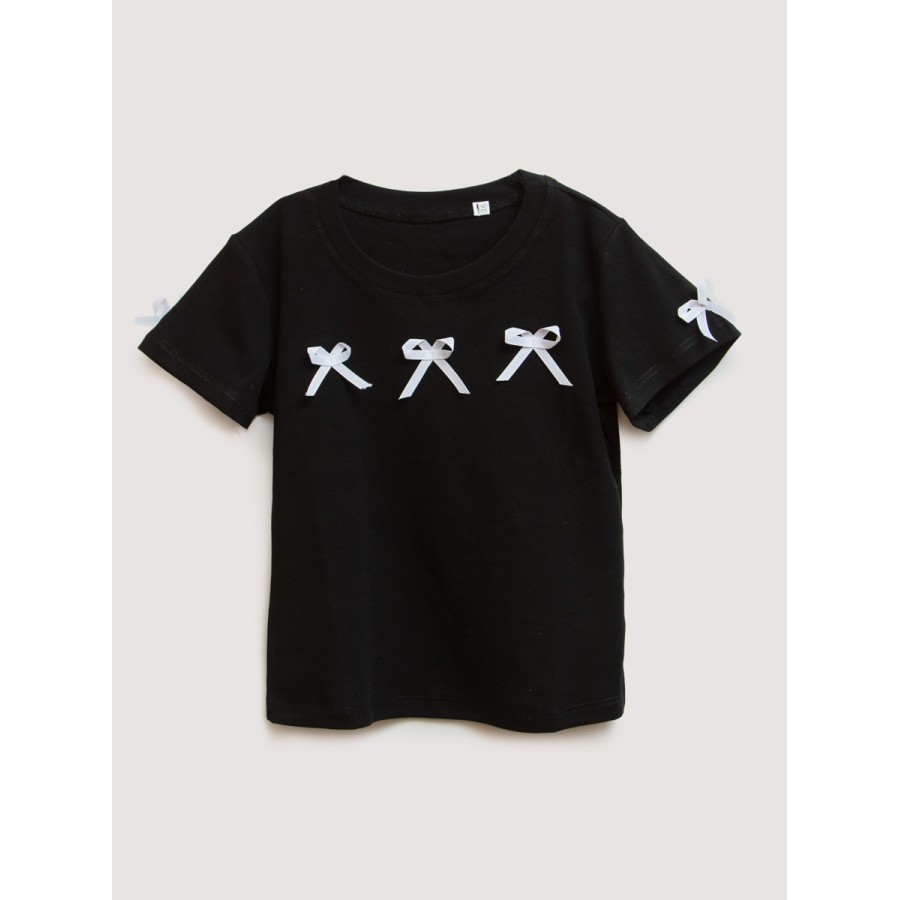 .60-16П КТ Футболка черная со спущенным плечом + принт, из кулирного полотна