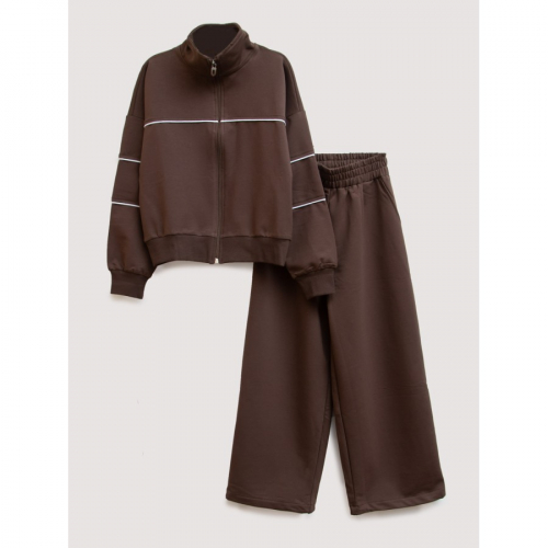 ..К75-108 Костюм двойка на молнии с брюками палаццо, шоколад.