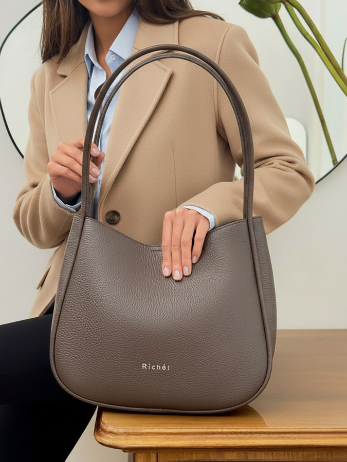 Сумка: Женская кожаная сумка Richet 3143LG 612 Тауп