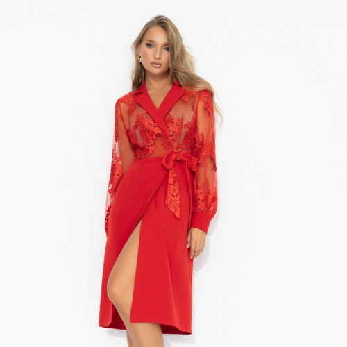 Платье-футляр комбинированное с кружевом, Модный эверест