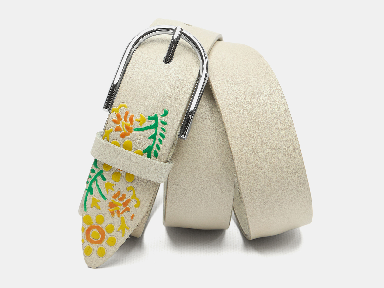 Кожаный бежевый женский джинсовый ремень B30-2178
