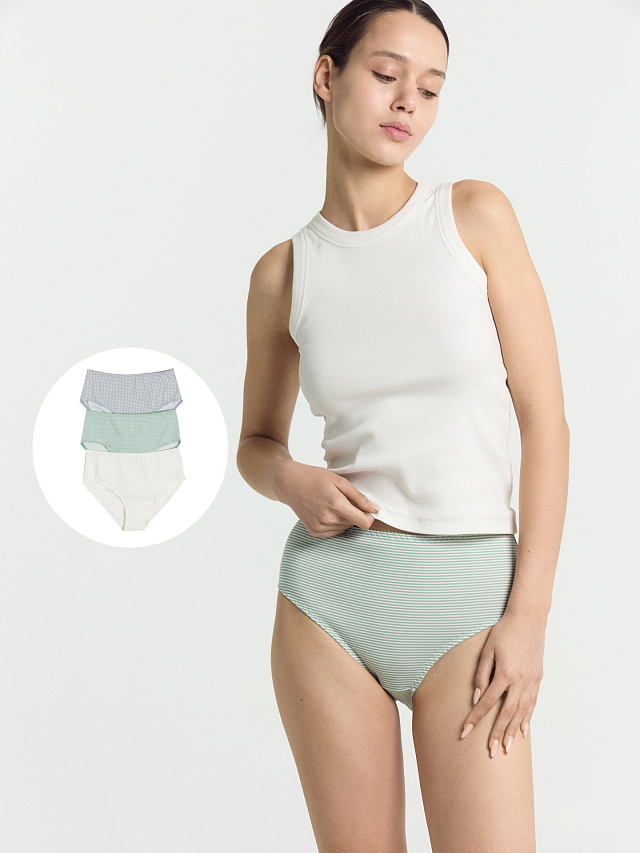Трусы женские макси набор (3 шт.) в зеленую полоску