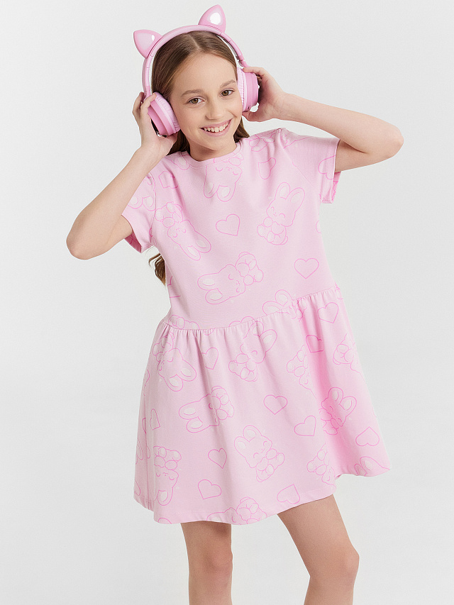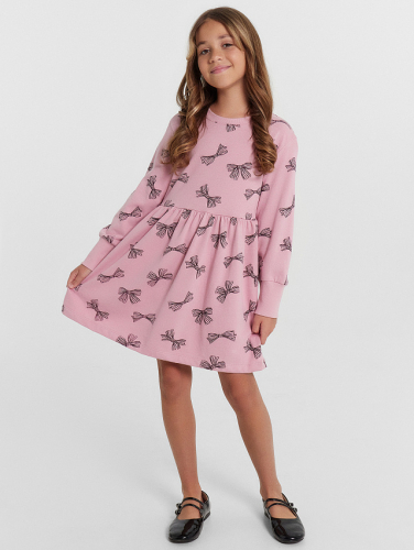 Платье для девочек розовое с принтом "бантики"