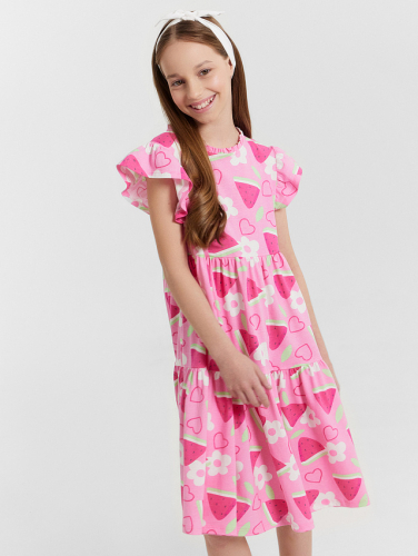 Платье для девочек розовое с принтом "клубнички"