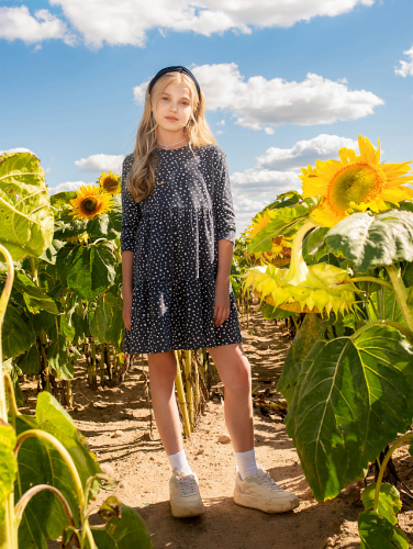 Платье для девочек темно-синее в цветочки