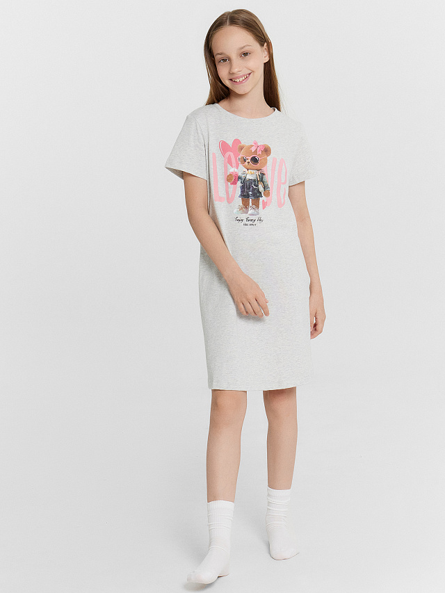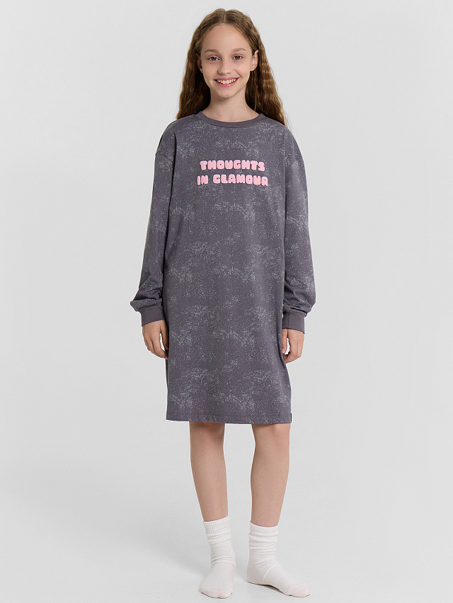 Сорочка ночная для девочек серая с принтом и надписью "thoughts in glamour"