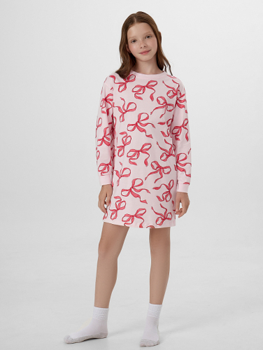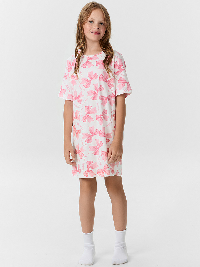 Сорочка ночная для девочек розовая с принтом "бантики"
