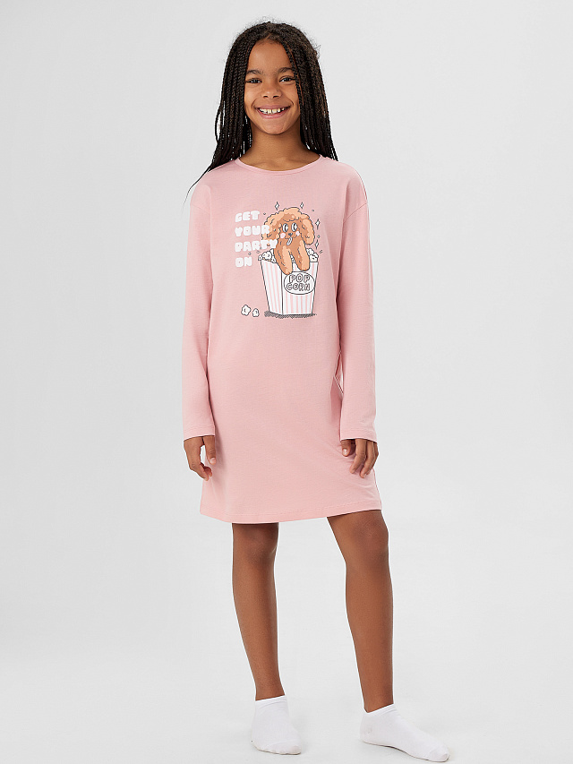 Сорочка ночная для девочек розовая с надписью "Get your party on"