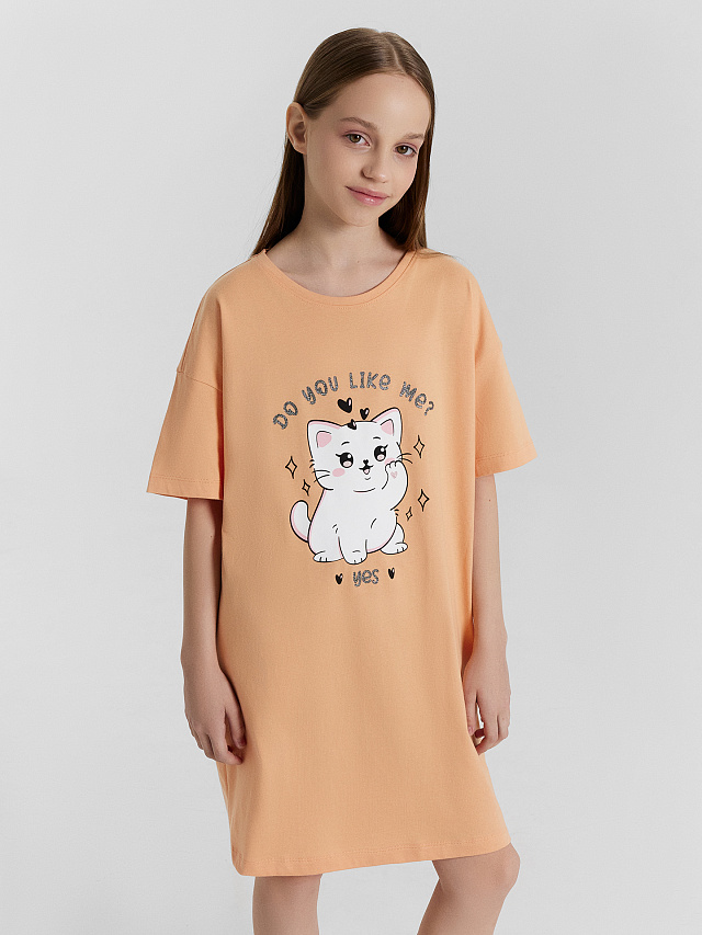 Сорочка ночная для девочек оранжевая с принтом и надписью "Do you like me? Yes"