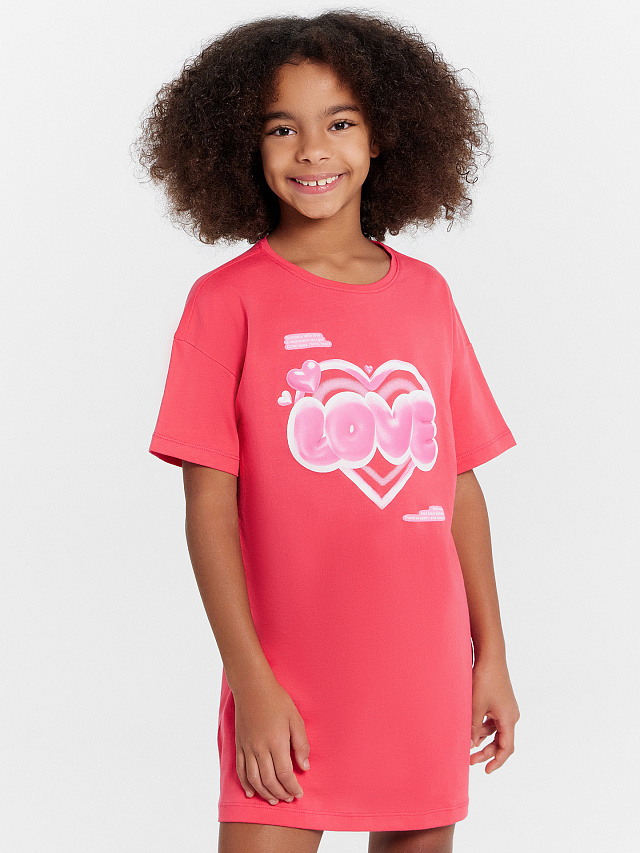 Сорочка ночная для девочек коралловая с принтом "Love"