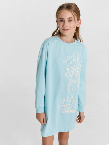 Сорочка ночная для девочек голубая с олененком Бэмби