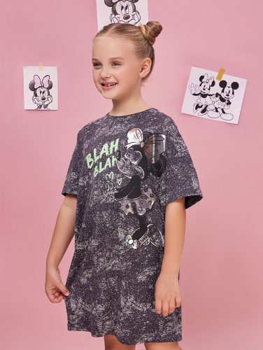 Сорочка ночная для девочек серая с принтом в виде Минни Маус