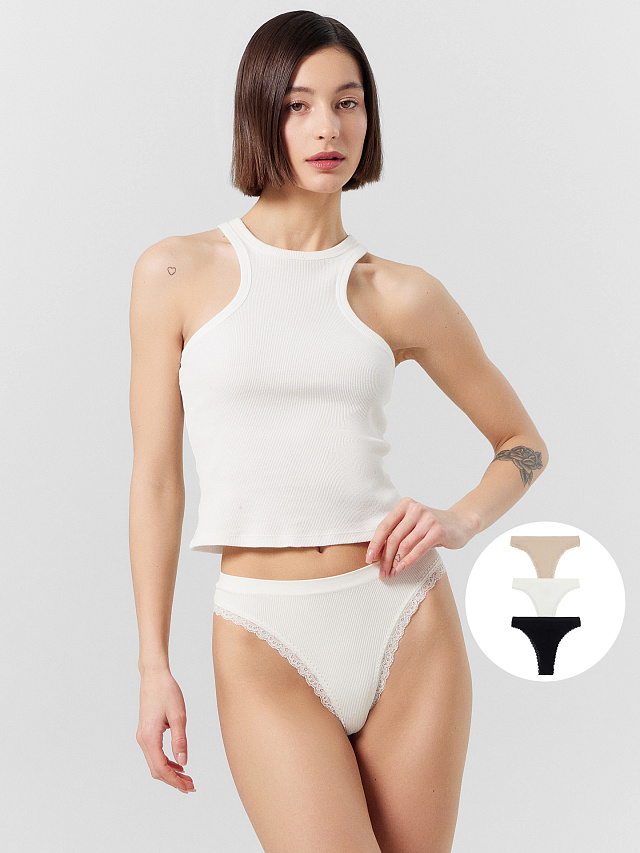 Трусы женские бразилиана мультипак (3 шт.) в сумрачно-белом цвете