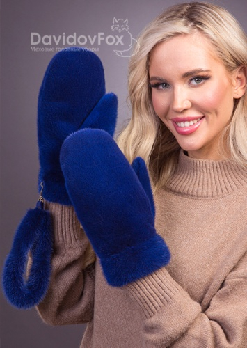 Варежки норка индиго