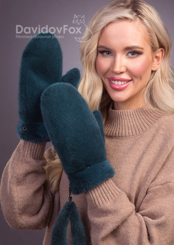 Варежки норка изумруд