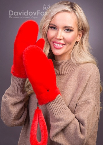 Варежки норка алые