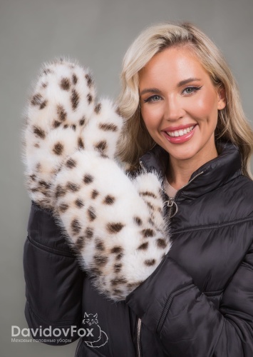Варежки экомех рысь белый комби