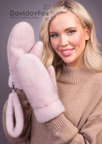 Варежки норка дымчатая роза