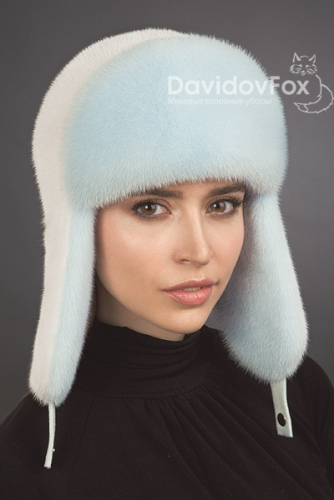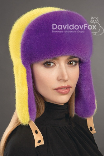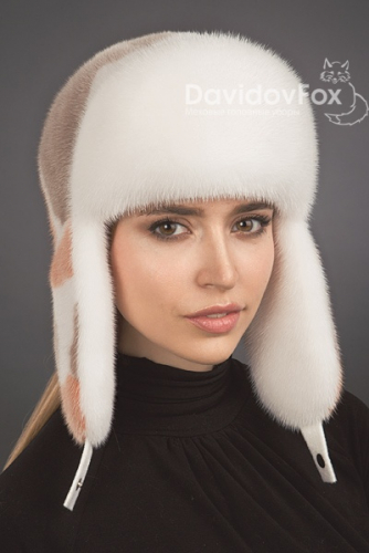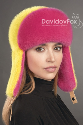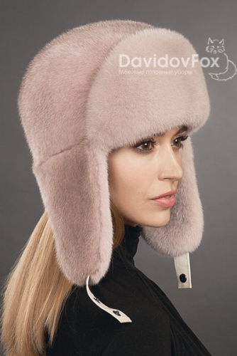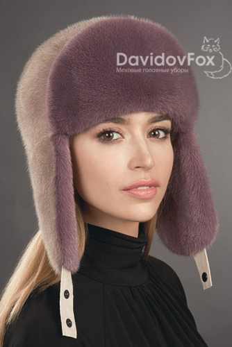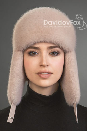 Шапка женская Ушанка норка кизил, дымчатая роза