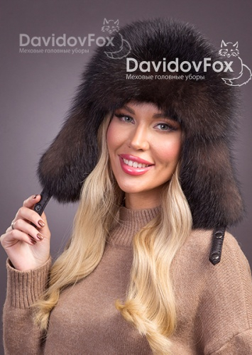 Шапка женская Ушанка кожа песец цвет соболь