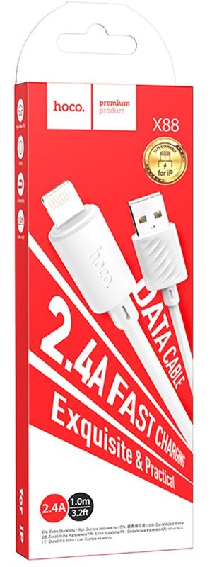 Кабель Hoco, X88 Gratified, Type C - 8 pin, круглый, 2.4A, силикон, 1 метр (белый)