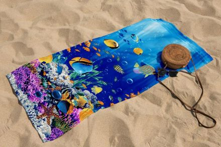 Полотенце вафельное пляжное - банное 75х150 см №78 Подводный мир
