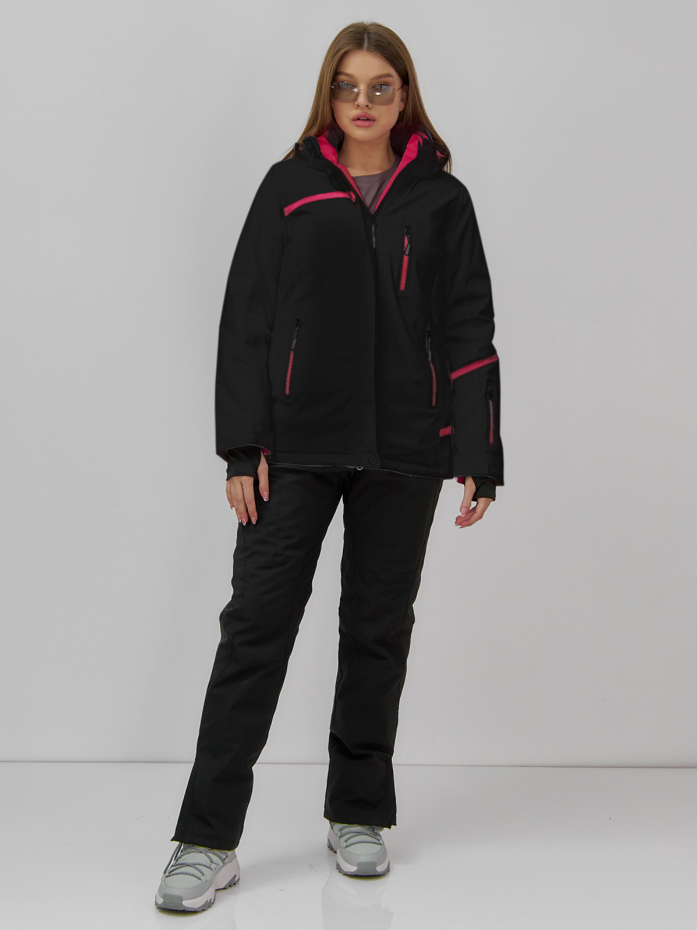 Горнолыжный костюм женский зимний черного цвета 07091Ch
