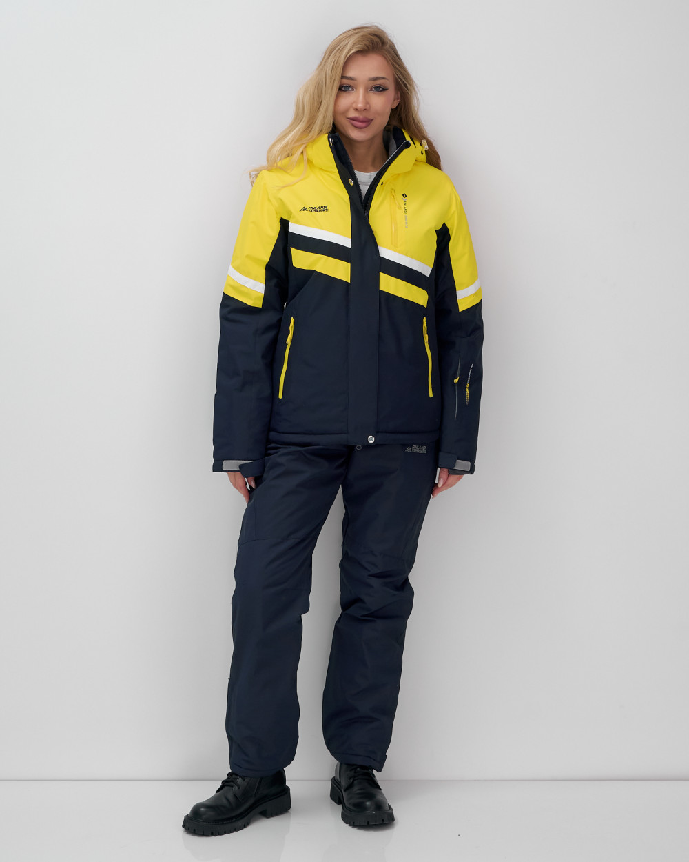 Горнолыжный костюм женский зимний желтого цвета 02808J