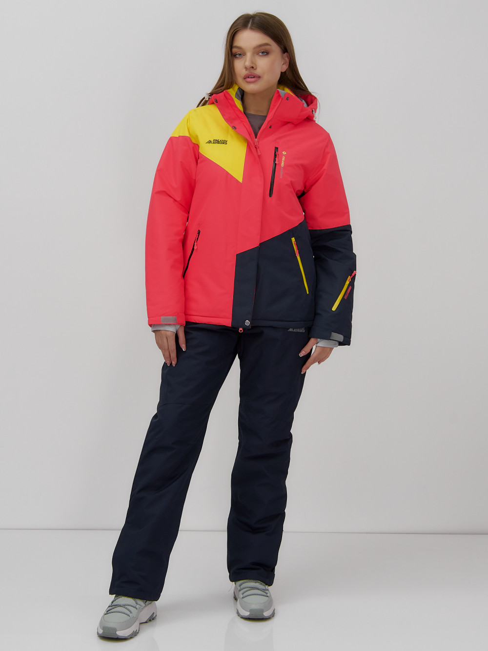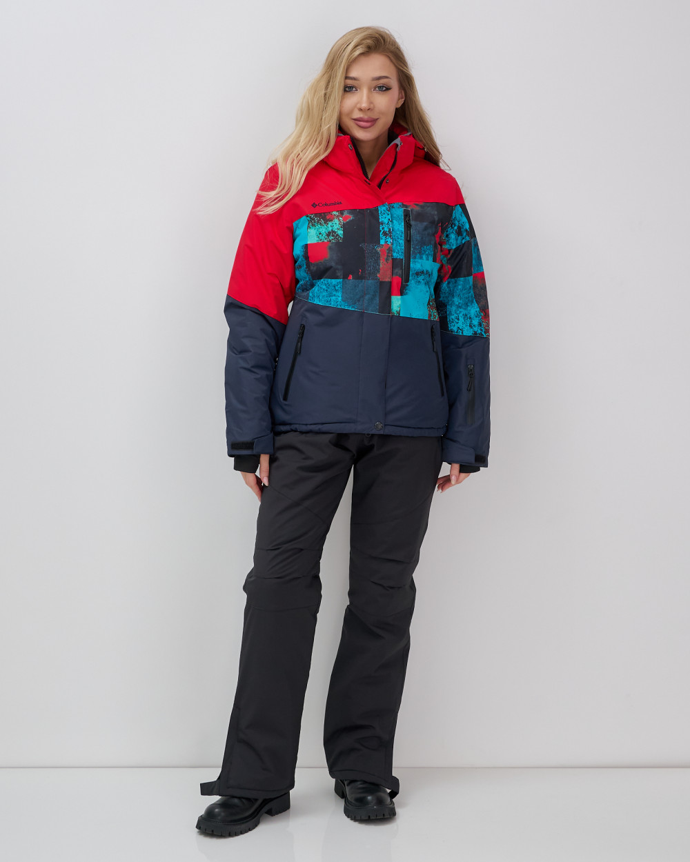 Горнолыжный костюм женский зимний красного цвета 02395Kr