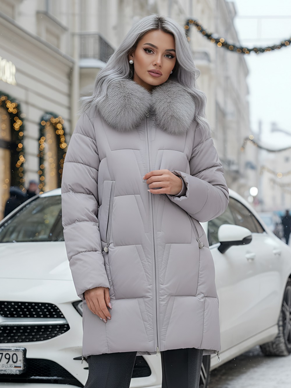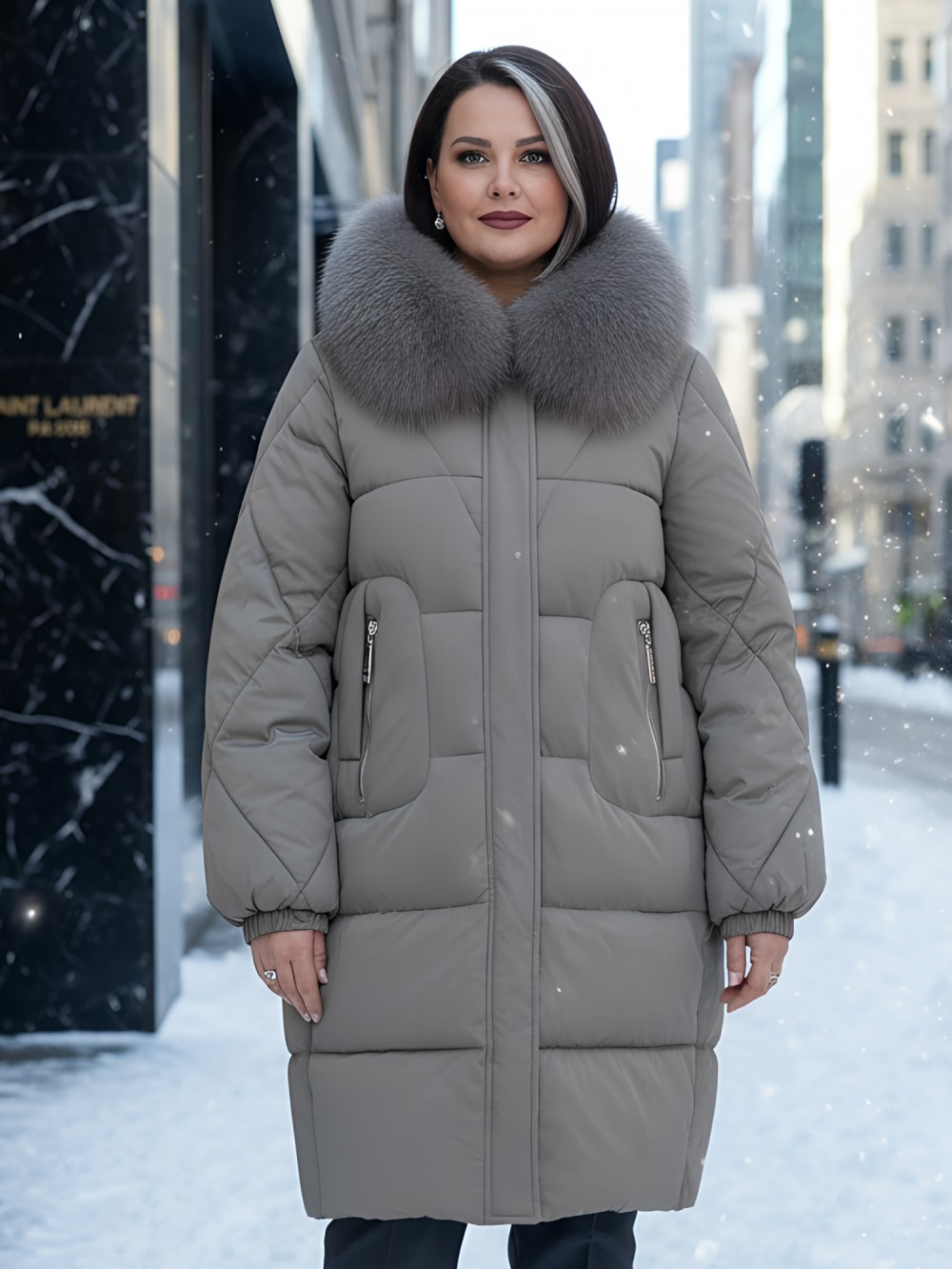 Пальто зимнее утепленное с мехом и капюшоном тренд цвета хаки 7745Kh