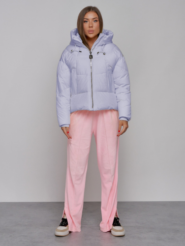 Зимняя женская куртка модная с капюшоном фиолетового цвета 512305F