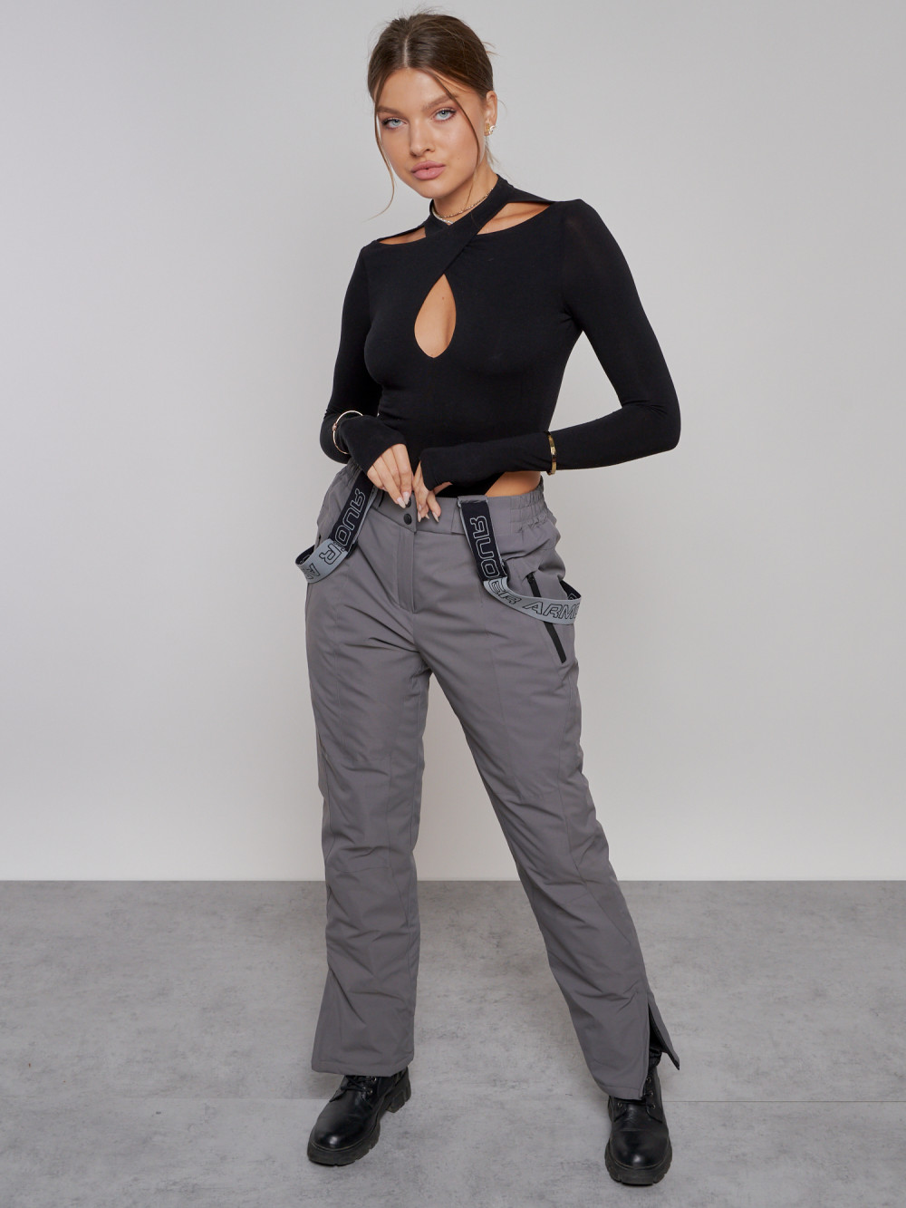 Полукомбинезон утепленный женский зимний горнолыжный серого цвета 526Sr
