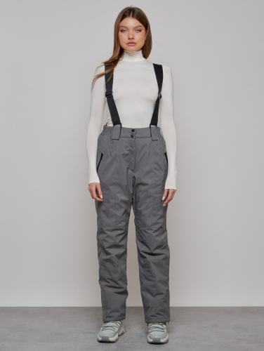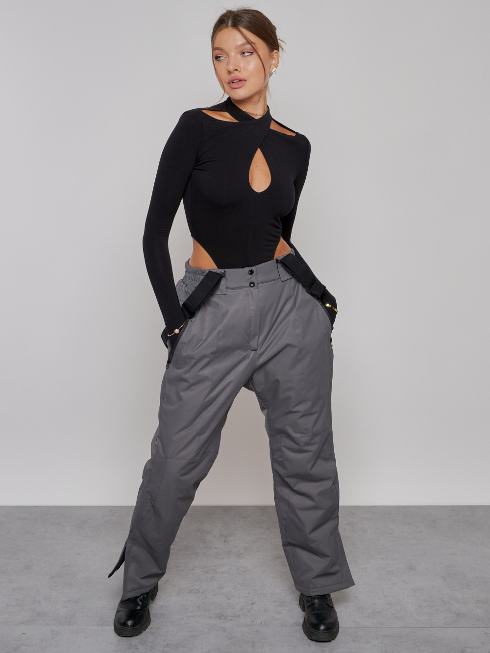 Полукомбинезон утепленный женский зимний горнолыжный серого цвета 1333Sr