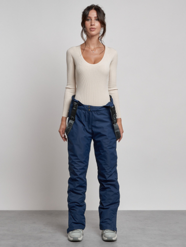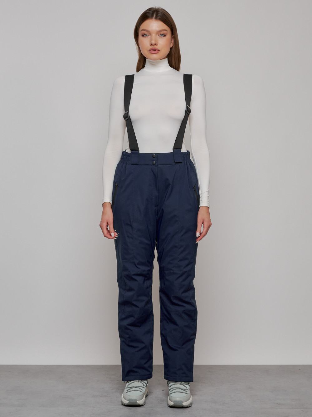 Полукомбинезон утепленный женский зимний горнолыжный темно-синего цвета 7607TS