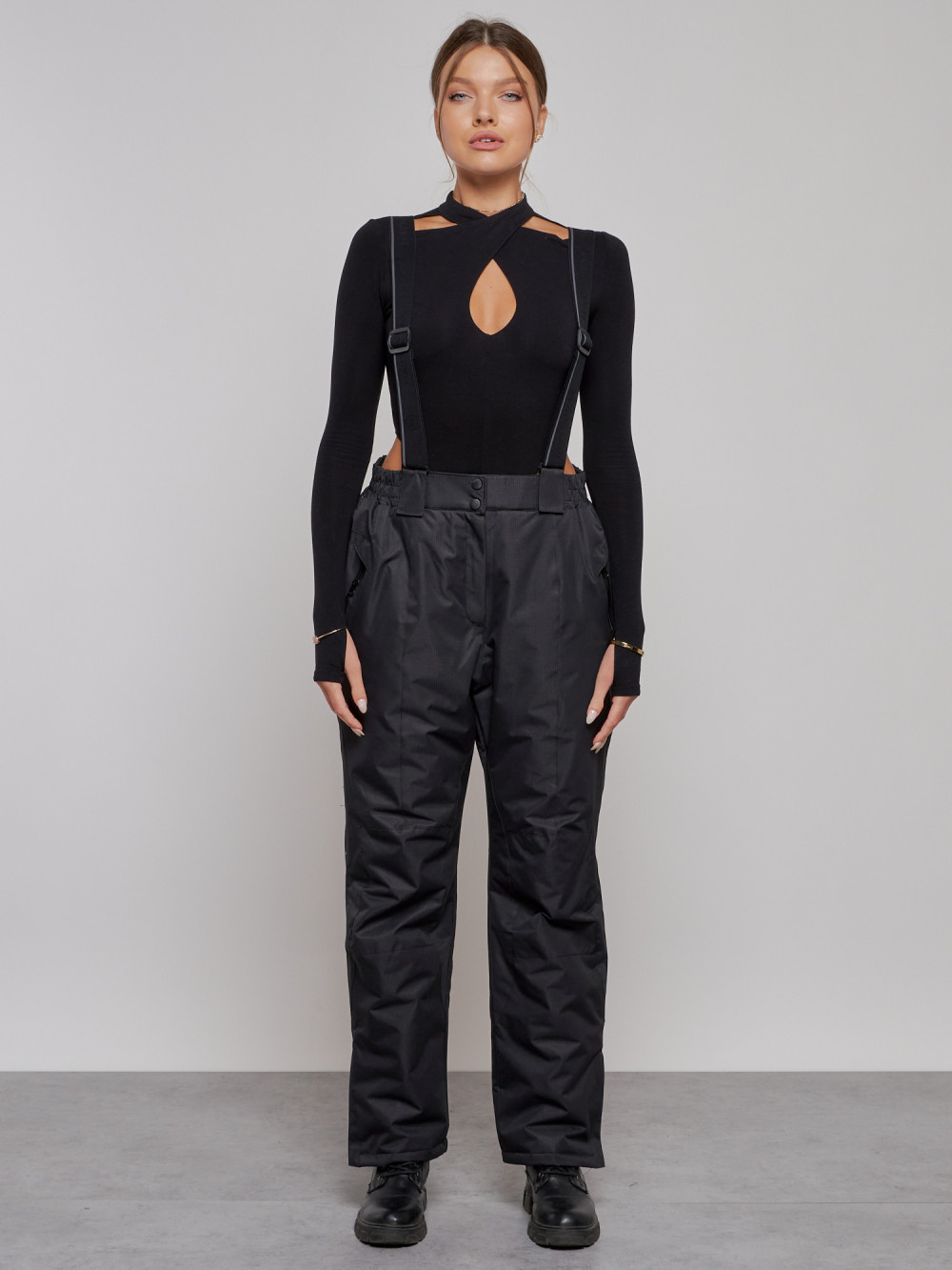 Полукомбинезон утепленный женский зимний горнолыжный черного цвета 526Ch
