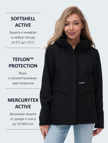Парка спортивная женская с капюшоном softshell черного цвета 9568Ch