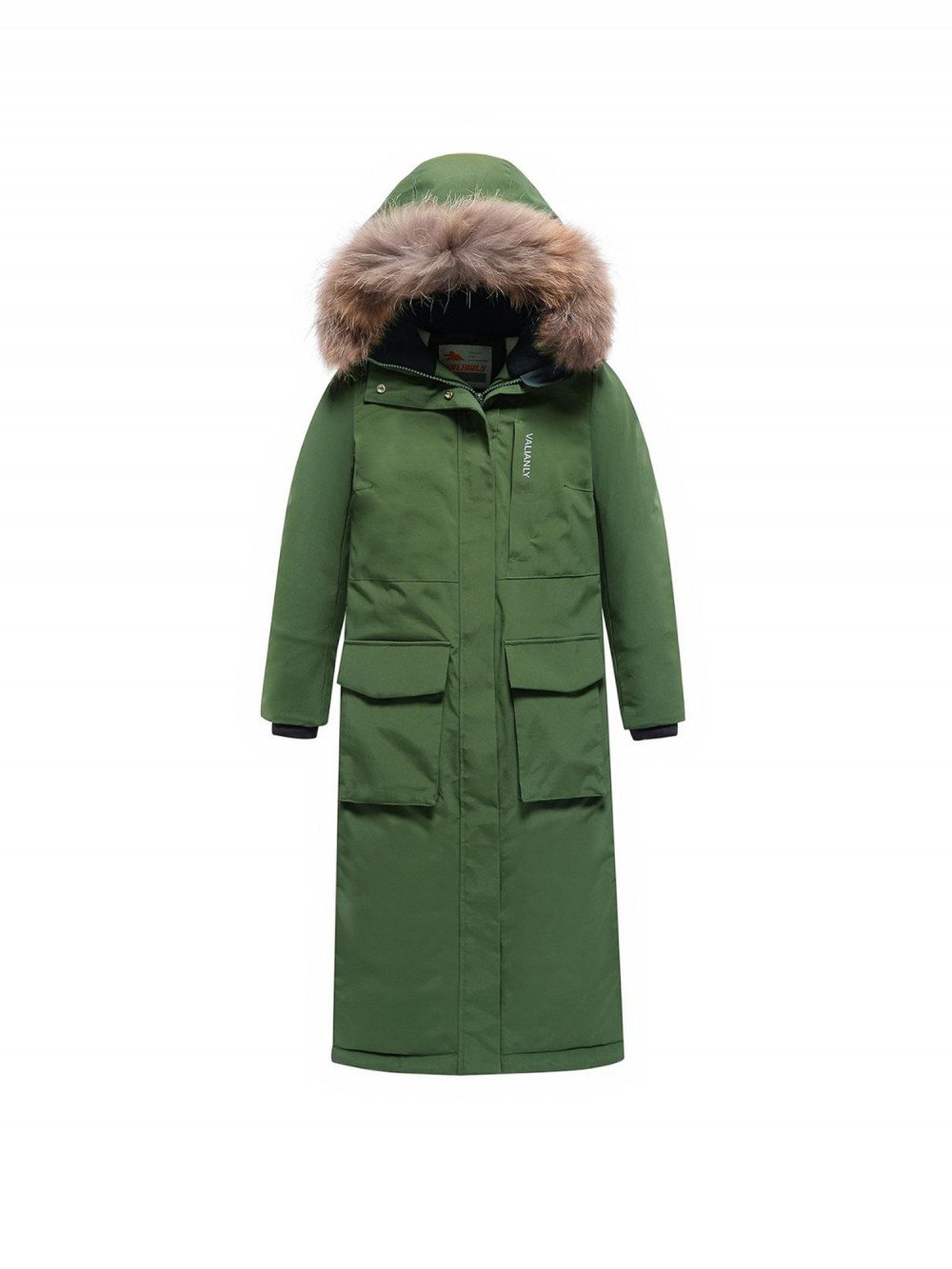 Куртка парка зимняя подростковая для девочки с капюшоном и мехом зеленого цвета 9448Z
