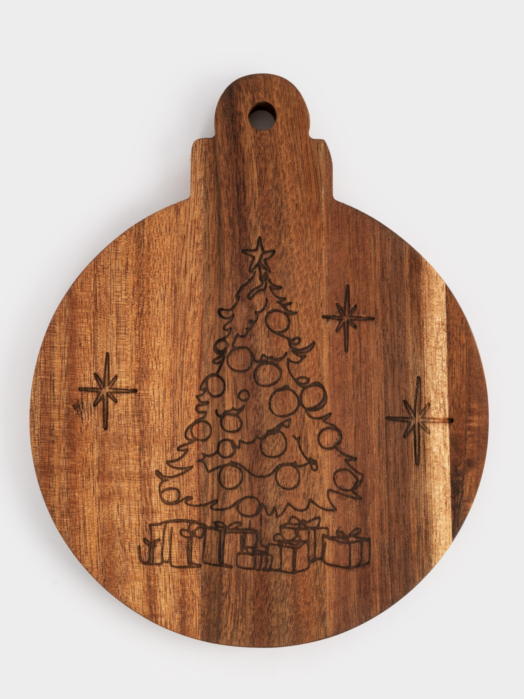 Набор для сыра, 2 пр, доска-блюдо, сталь/дерево, золотистый, Новогодний шар