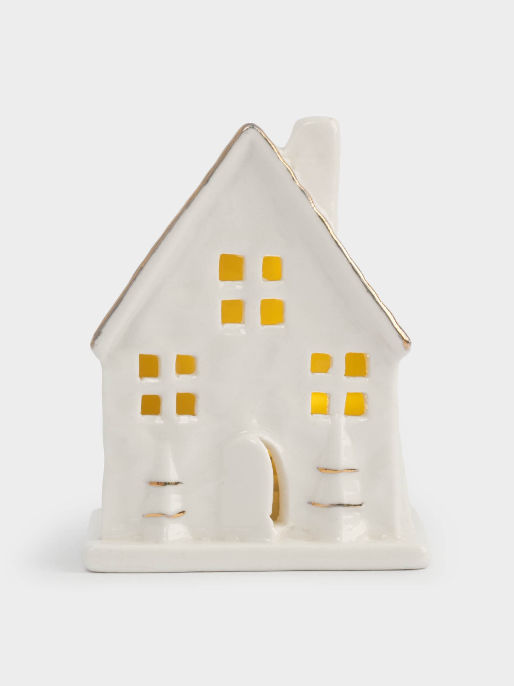 Статуэтка с подсветкой, 8 см, фарфор P, бело-золотистый, Дом, Townlet